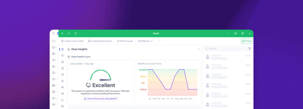 It delivers a qualitative health score for each equipment and location, using your existing data with no IoT needed. Gear AI analyses historical patterns and trends to show you what’s healthy, what’s at risk, and where your team should focus first.